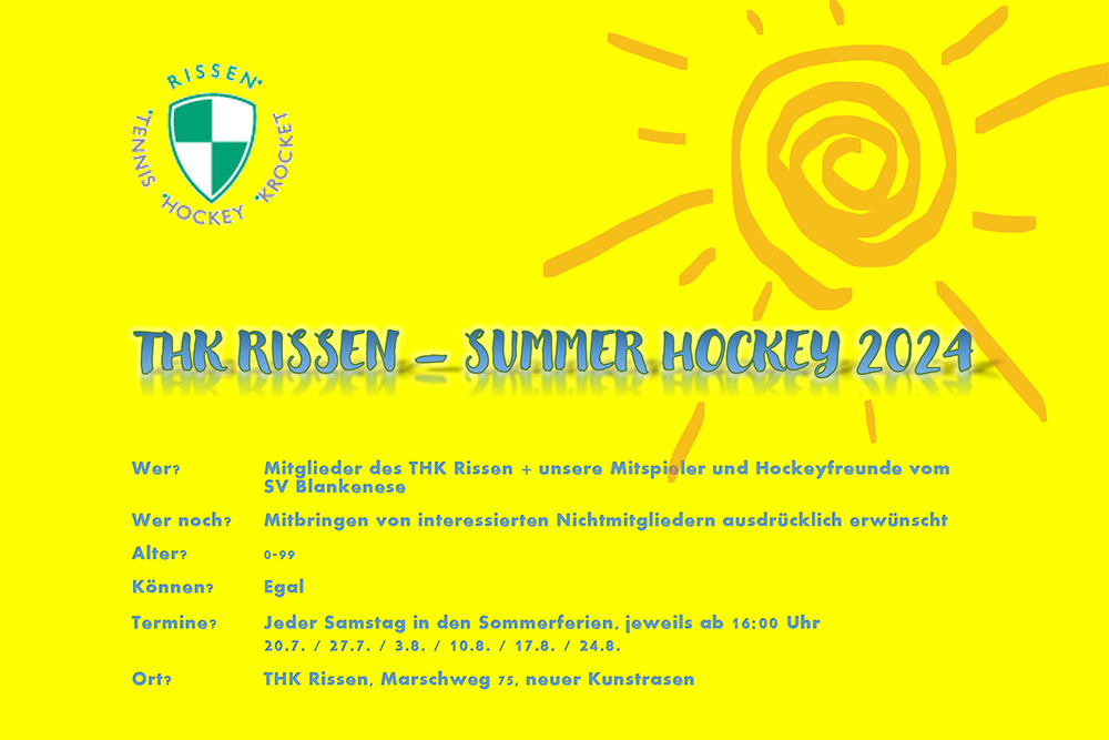 Wer? Mitglieder des THK Rissen + unsere Mitspieler und Hockeyfreunde vom SV Blankenese Wer noch? Mitbringen von interessierten Nichtmitgliedern ausdrücklich erwünscht Alter? 0-99 Können? Egal Termine? Jeder Samstag in den Sommerferien, jeweils ab 16:00 Uhr 20.7. / 27.7. / 3.8. / 10.8. / 17.8. / 24.8. Ort? THK Rissen, Marschweg 75, neuer Kunstrasen Was passiert [...] |